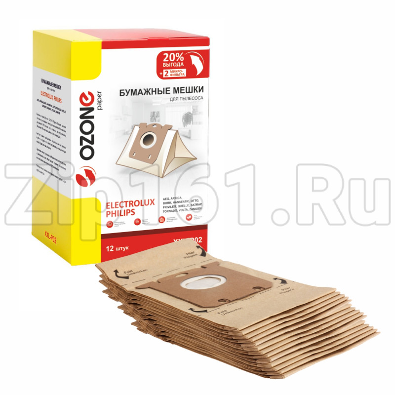 Мешки-пылесборники бумажные 12шт + 2 микрофильтра Electrolux, Quelle, Satrap Ozone XXL-P02